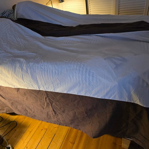 Valkoinen kauniisti laskeutuva helmalakana 90cm leveään sänkyyn. Käytetty ja edelleen hyvässä kunnossa.