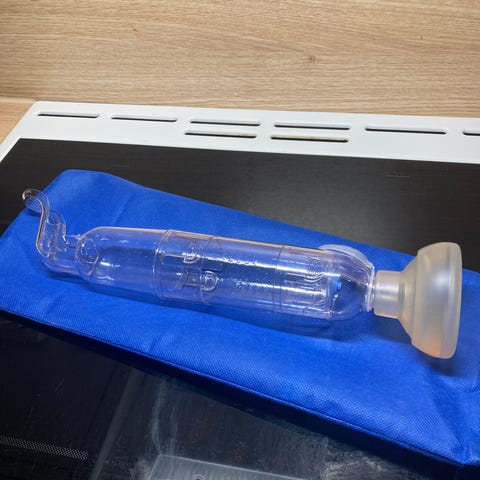 Tilanjatke lapselle inhaloitavan astmalääkkeen annostelua helpottamaan.