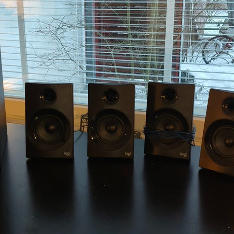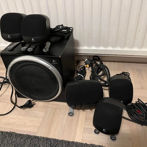 Myydään Logitech X-540 5.1 -kaiutinjärjestelmä, hyvässä ja siistissä kunnossa. Kaiuttimet toimivat moitteettomasti ja tarjoavat monipuolisen 5.1-surround-äänen, joka sopii elokuviin, peleihin ja musiikkiin.