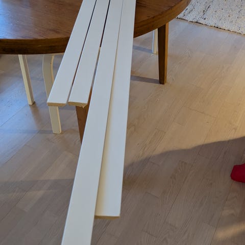 - Sekalaisia pätkiä 12 x 42 tasaista valkoista listaa. Pisin on 1820 mm ja lyhimmät palat 500 mm. Huom. osassa on ruuvin reikiä. Ei maksua, nouto riittää.