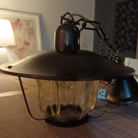 Valkoinen lasinen valaisin vaihdettavalla led-lampulla.