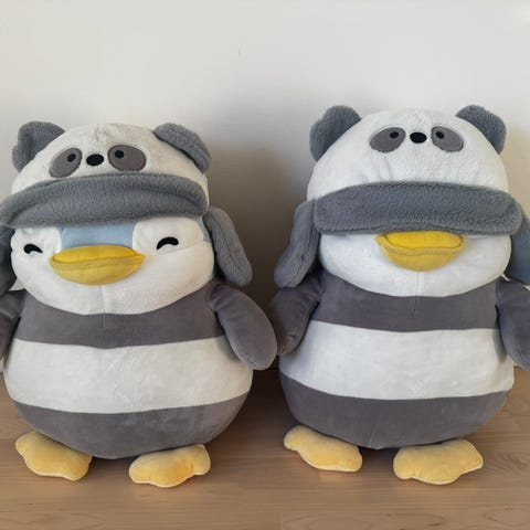 Eläimetön ja savuton talous. Pölyä on toki saattanut tarttua. Säilytetty koko ajan lämpimissä asuintiloissa. Pingviinillä on nappisilmät, joten en suosittele aivan vauvaikäisille.