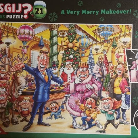 Wasgij palapeli, jossa kaksi 1000 palan palapeliä. Toinen mysteeri ja toinen kansikuva.