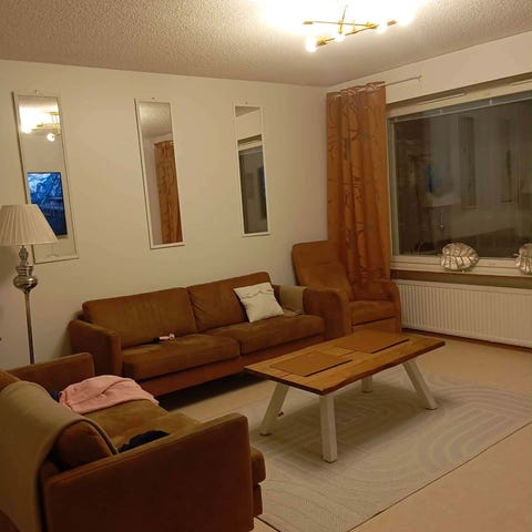 Sohva ja nojatuoli myynnissä. Mittoja näkee kahdessa viimeisessä kuvassa. En löytänyt moitittavaa ja kunto mielestäni erinomainen. Voi tulla katsomaan paikanpäälle.