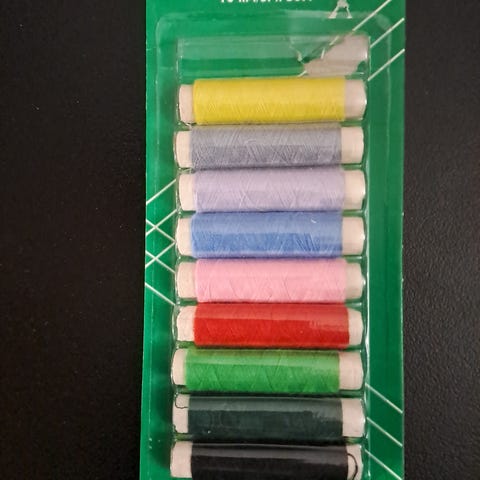 Ompelusarja sisältää erilaisia ompelulankoja eri väreissä ja neuloja. Pakkaus on läpinäkyvä muovilaatikko, jossa on useita lokeroita lankojen ja neulojen säilyttämistä varten. Sisältö soveltuu ompeluun ja korjauksiin. Käytetty ja säilytetty, joitakin lankoja on jäljellä vähän, mutta ne ovat hyvässä kunnossa.