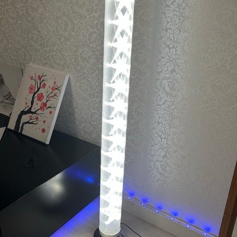 Ehjä ja siistissä kunnossa oleva lattiavalaisin oransseilla lasikuvuilla. Korkeus noin 150 cm. Vain nouto Ala-Tikkurilan Pelican varastolta.