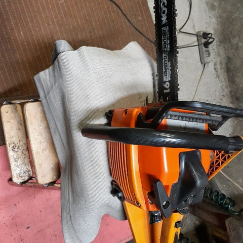 Husqvarna moottorisaha. Bensiinikäyttöinen ketjusaha puun kaatoon, katkaisuun ja karsintaan. Runko-oranssi ja harmaa väritys, etukahva ja ketjusuoja. Soveltuu pihapuiden kaatoon, polttopuiden tekoon ja muuhun puuntyöstöön.