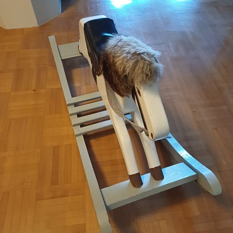 Myydään siistikuntoinen ja ehjä puinen lasten keinuhevonen.