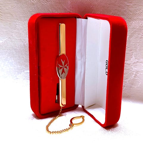 Myydään solmionpidike ruotsalaisen olutmerkin Spendrup's Old Gold mainoksella. Materiaali tuntematon. Käyttämätön. 1980-luvulta.
