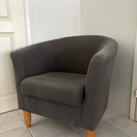 Siru-nojatuoli Edinburgh tyyppisellä kankaalla, istuin osassa pieni painauma.