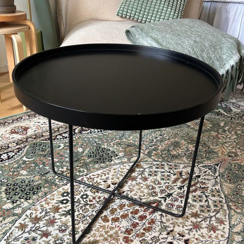 Myydään pyöreä sohvapöytä, jossa käytännöllinen säilytystila. Pieniä käytön jälkiä löytyy, mutta ne on huomioitu hinnassa.