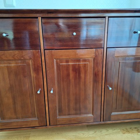 Kuvan Vilja - senkki. Käytönjälkeä jonkunverran, mutta yleisilme hyvin siisti. Toisen puolen reunan jalat muutossa ”revennyt” rungosta, ei ole käyttöä haitannut, näkyy kuvissa.