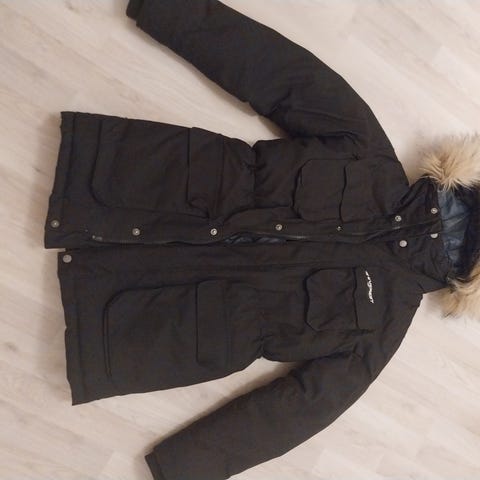 Myynnissä hyväkuntoinen Everest nmusta , Muhkea ja lämmin untuvatakki.