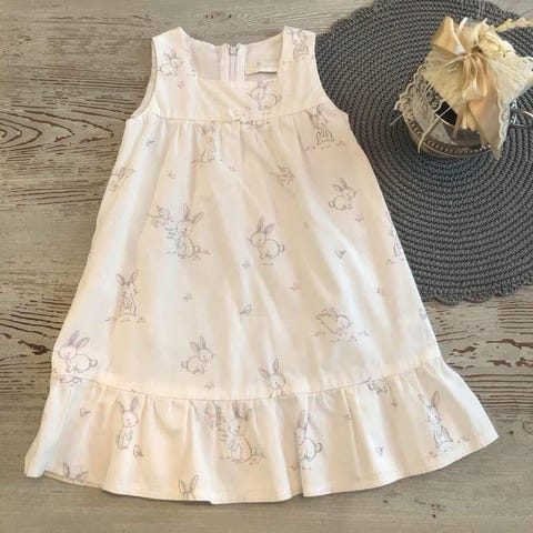 Mignelin: Vaaleanpunainen juhlamekko kokoa 86 cm. Hyväkuntoinen. Mekon helmassa on kaksi tyllikerrostasta ja vuorikangas. Päällimmäisessä tyllikerroksessa on edessä alhaalla helmassa muutamia kuvanmukaisia reikiä, jotka eivät käytössä juuri erotu helman laskoksista.