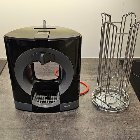 Dolce Gusto kahvikone, valkoinen. Kahvikone on suunniteltu kapselikahville, ja sillä voi valmistaa myös esim. kaakaota. Jäänyt itselläni lähes käyttämättä. Mukaan tulee myös teline kapseleille, sekä halutessaan jäljellä olevat kapselit.