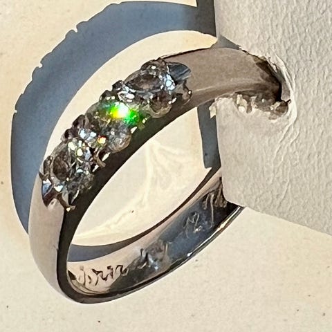 585-pitoisesta valkokullasta valmistettu sormus timantilla