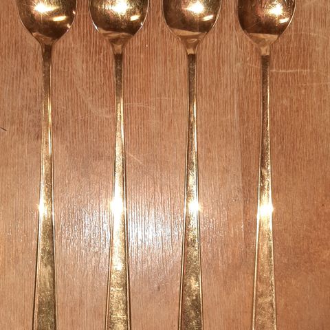 Nivella Solingen hyytelölusikka, ruostumaton teräs ja kultakoristelu. Osa isosta aterinsatjasta.