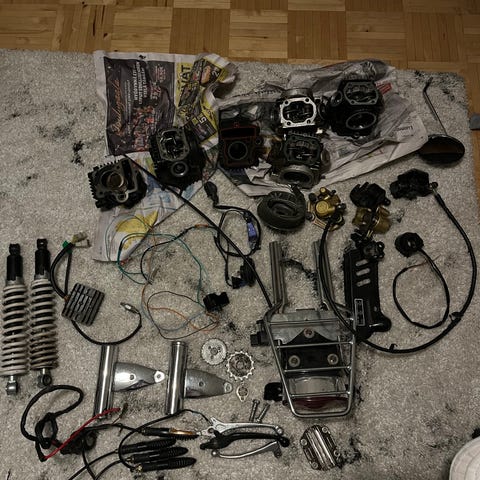 Mankiin 85cc sylinteri sarja hyvässä kunnossa suoraan ajosta isomman alta pois ainut vika niin jakoketjun laahaimen mutterin kohdan kierteet sökönä mutta locktiteä ja tiivistemassaa mutterin kantaan nii on pysyny todella hyvin kierteet on kunnossa kannessa
