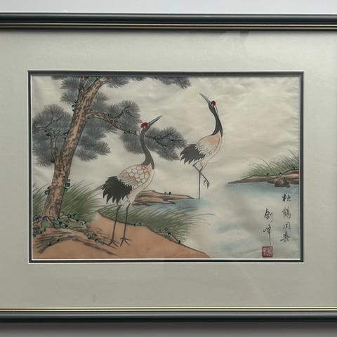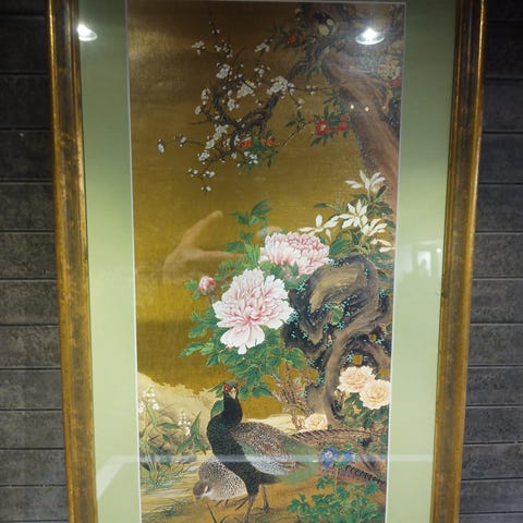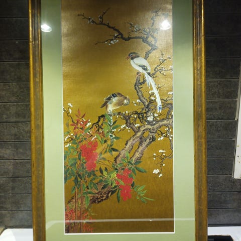 Kaunis Japanilainen taideteos todella tyylikkäillä tyyliin sopivilla raameilla. Kuvassa upen yksityiskohtaisesti ja herkällä tavalla toteutettu kissa.