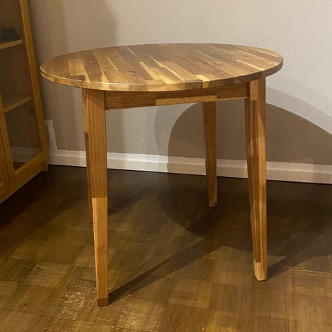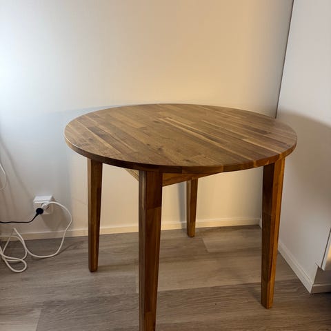 Myynnissä vuoden vanha Ikea Nackanäs -pöytä ja 2 tuolia.