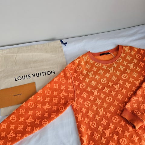 Louis Vuitton miesten villapaita, koko L, sininen väri ja villamateriaali.