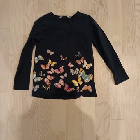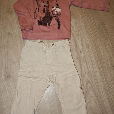 Myydään tyttöjen vaatesetti, johon kuuluu kauluspaita ja nallepitkähihainen