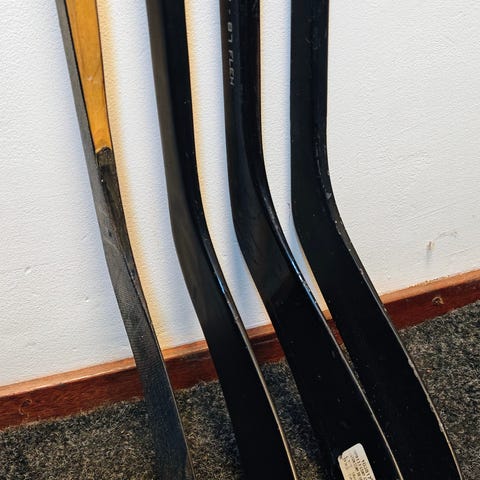 Aikuisten mailoja. Eri jäykkyyksiä 85-100 flex, eri mittaisia (joistakin otettu n. 10cm pätkä pois) ja merkkeinä CCM/Easton/Bauer