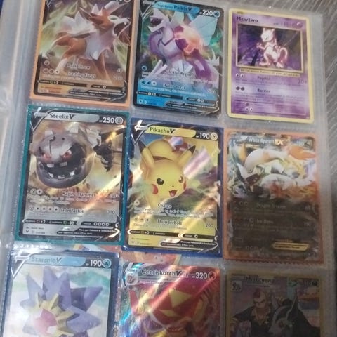 Kokoelma Pokémon-kortteja, erilaisia kortteja eri hahmoista ja tasoista. Kortit on säilytetty kansiossa, sopivat keräilyyn tai pelaamiseen.23kpl
