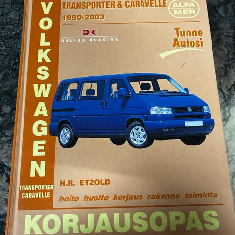 Volkswagen Transporter & Caravelle korjausopas vuosille 1990-2003, sisältäen 2.0-2.5 litran bensiinimoottorit ja dieselmallit. Opas kattaa huolto-, korjaus- ja rakenneohjeet sekä tekniset tiedot kyseisille malleille.