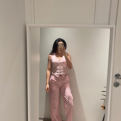 Täysin uudet mustat satiini cargo housut, kokolapussa lukee 36, mutta vastaa kokoa 34 eli xs. Ovh n 96€. Petite mallistoa, sopii n 160cm pituisille. On hyvän laatuiset housut. Ei tuu käyttöön vain koska on minulle kireät vyötäröltä (käytän normisti s kokoa). Sisälahkeen pituus: n. 73cm