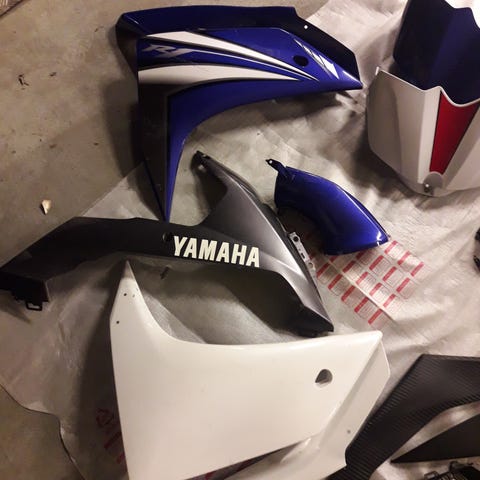 Yamaha R1 Moottoripyörän sivukatepaketti sininen musta valkoinen