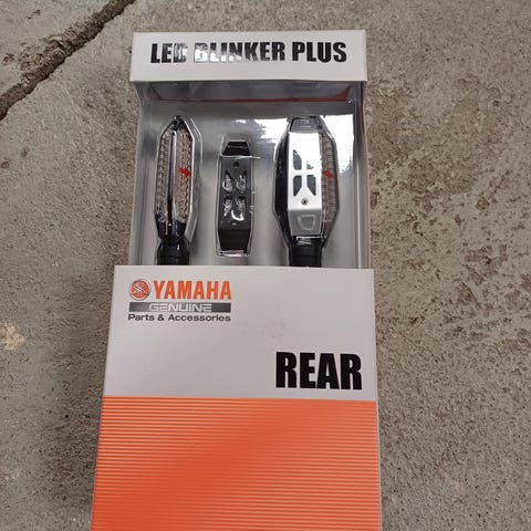 Yamaha takalokasuoja vilkulla. Sopii moottoripyöriin, varustettu punaisella heijastimella ja vilkulla. Valmistettu kestävästä muovista.