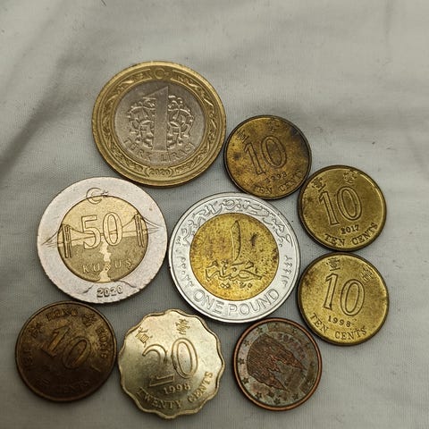 5 mk kolikoita ja reikärahoja