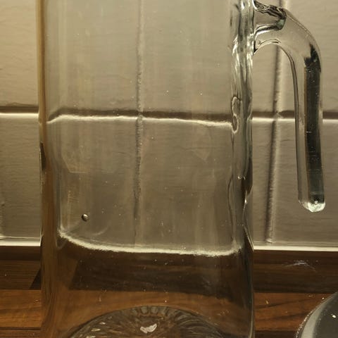 Vihreä lasinen kannu ja kuusi vihreää lasia. Sarja sopii juomien tarjoiluun ja pöydän kattaukseen.