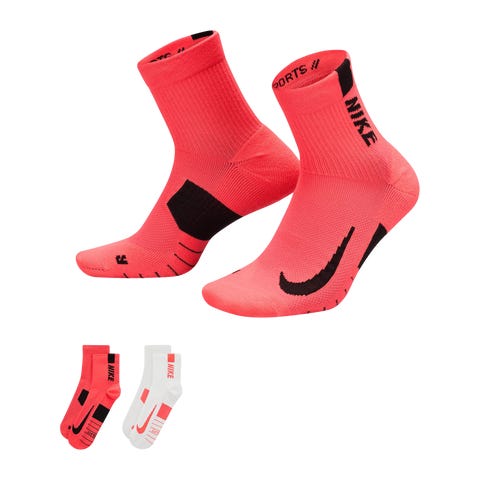 Mukavat treenisukat, jotka sopivat myös arkikäyttöön. Valmistettu hikeä siirtävästä materiaalista parhaan mukavuuden takaamiseksi. Pakkauksessa kaksi paria sukkia.