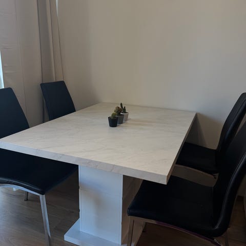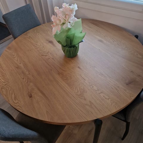 Ihanaakin ihanampi Veken ruokapöytä muuton alta pois. Halkaisija pöytälevylle on 120cm.