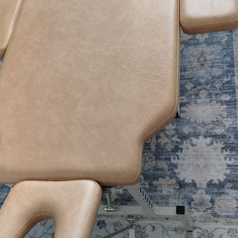 Tästä seuraavalle hieronta pöytä pienillä kauneus virheillä. Ei haittaa käyttöä, kun menee piiloon suojan alle. Itsellä jää käytöstä uuden tultua.