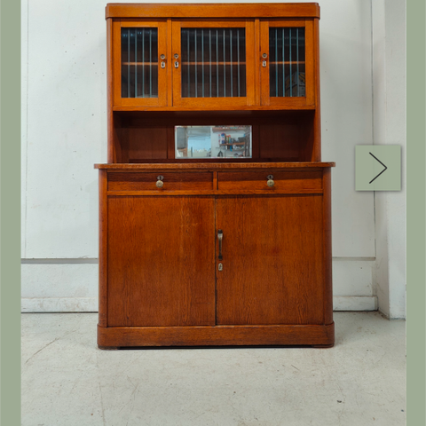 Jugend tyylin puinen astiakaappi / keittiökaappi uuteen kotiin. Yleiskunto ikäisekseen hyvä. Ulkopinnat aikanaan kunnostettu. Lukot toimivat ovissa ja avaimet tallessa. Yläosa kiinteä. Yksi vedin uusittu. Ei hajuja.