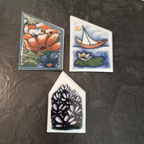 Keraamiset rintakorut/rintaneulat Heljä Liukko-Sundström (Arabia)