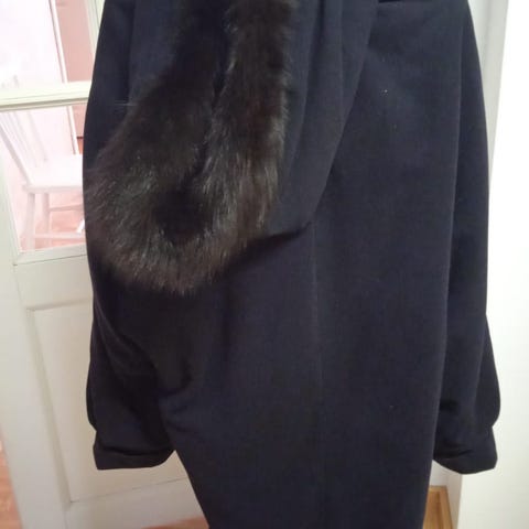 Materiaali: Pesulappu on leikattu pois, mutta materiaali villasekoitetta (sisältää villaa ja muita kuituja). Eläväinen teksturoitu hieman pörröinen pinta (bouclé-tyyppinen, sisällä sileä sävyyn sopiva vuorikangas.