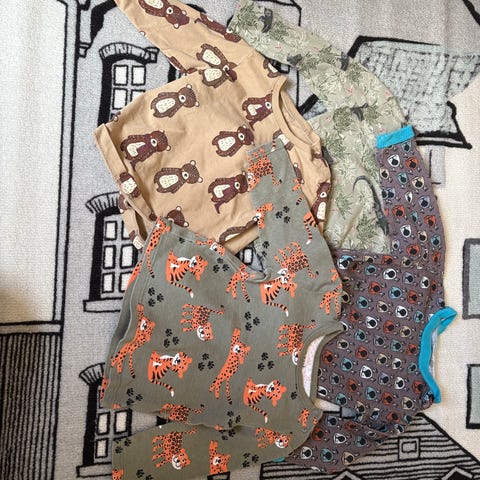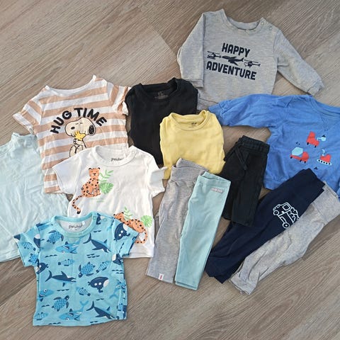 2 kauluspaita, 2 paitaa, 2 housut ja 1 body