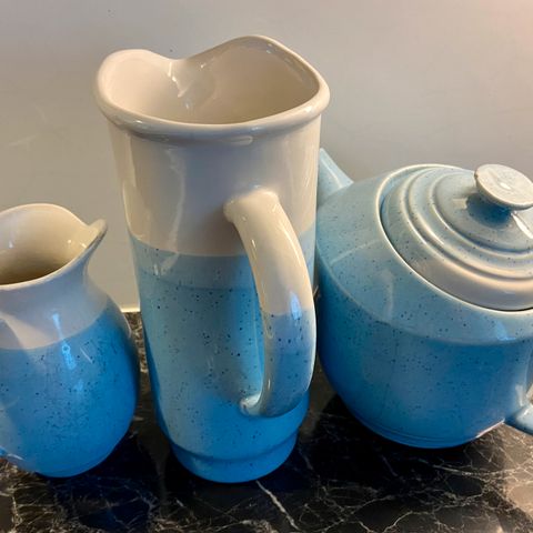 astiasto, joka koostuu useista mustavalkoisista keramiikkaesineistä kuten kupeista, kulhoista, lautasista kynttilä jutuista sokerikoista kermakoista ym