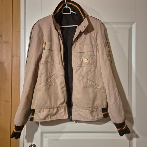 Vintage Miesten kevyttoppatakki. Lapussa lukee Specially for Toyota by Leonardo. Ka-ka 58 cm, olkapäästä helmaan 68 cm, hihan pituus 66 cm ja hartialeveys 54 cm.