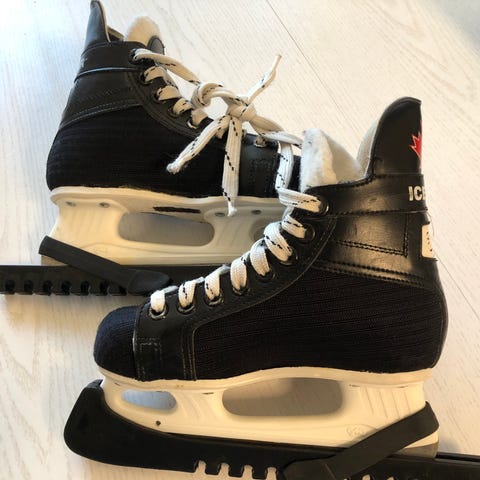 Lasten jääkiekkoluistimet, koko 32. Värit musta ja sininen. Teroitus voi olla aiheellista. Pohjallinen 20,5cm, mukaan n. 20 villa/Alu pohjalliset ja kuvassa olevat teräsuojat. Toimitus onnistuu omien menojen mukaan Kempeleessä ja Oulun lähialueilla.