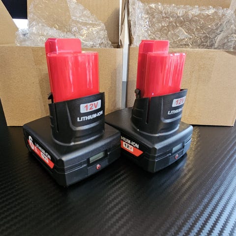 Akku joka sopii m12 milwaukee 12v koneisiin 360g 54wh, takana näyttö joka näyttää tarkat prosentit.