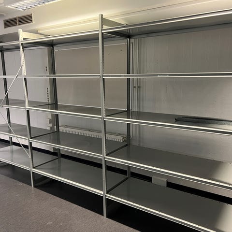 Hyväkuntoinen autohallissa käytetty metallihylly