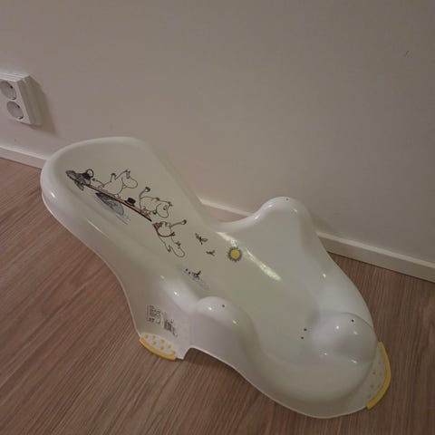Annetaan muovinen syöttötuoli. Mukaan tulee myös tarjotin ja istuinpehmuste. Ehjä, mutta vaatii pesua. Ensimmäiselle noutajalle.