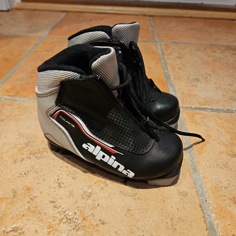 Alpina lasten hiihtomono musta ja punainen väri. 31 koolla ja nnn kiinnityksellä