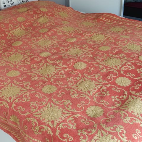 Kauniin vihreä päiväpeite. Kuvassa 160cm sängyllä. Noudettuna 30e, lähetettynä 40e.