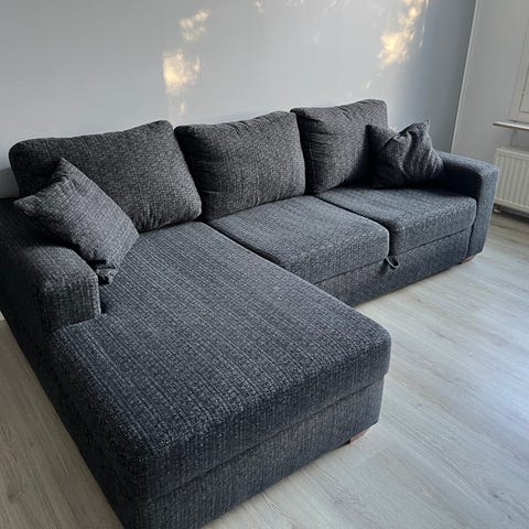 Sohva menee kolmeen osaan ja osat ovat suht keveitä siirrellä.